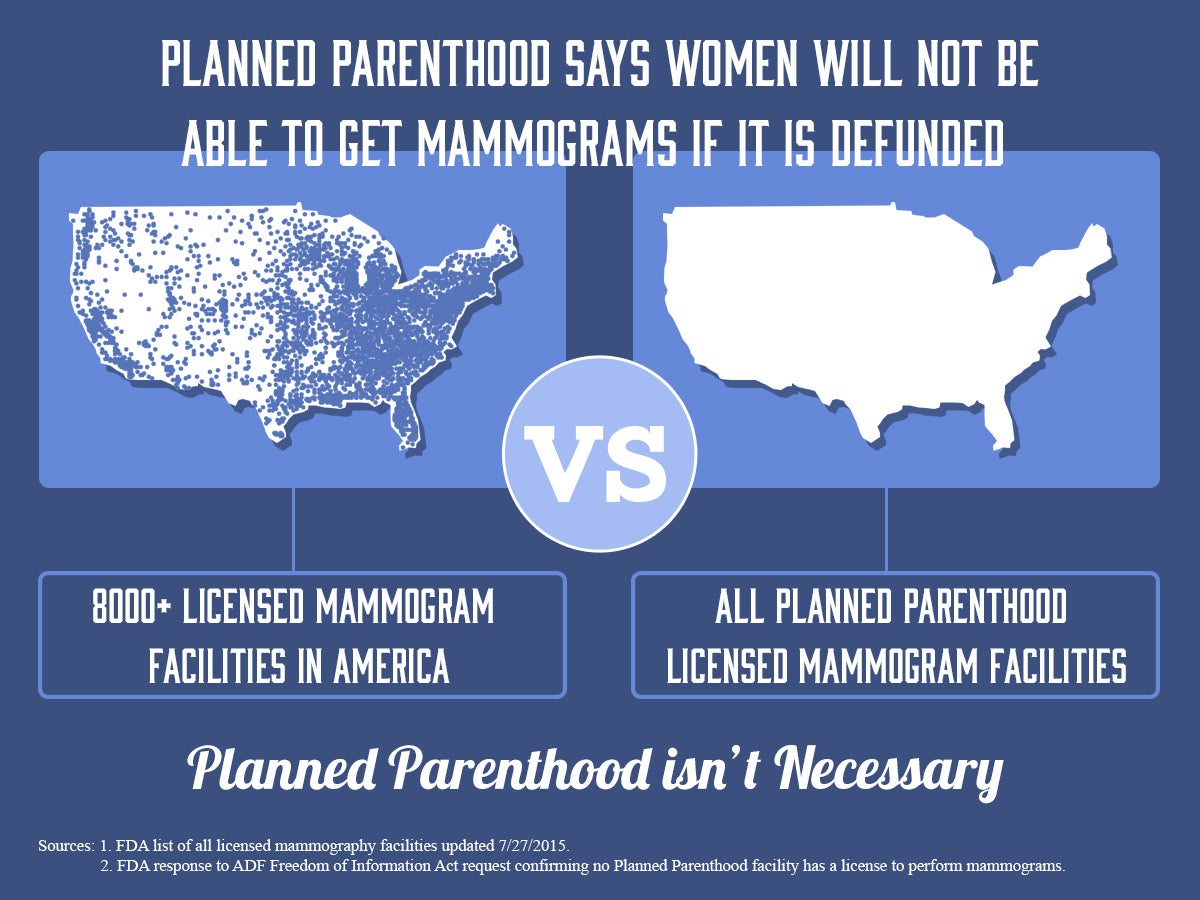 And for the record, Planned Parenthood does not have a license to perform mammograms at any of its facilities. Not one. But that doesn’t mean American women have nowhere to turn—according to the Food and Drug Administration, there are over 8,000 licensed mammogram facilities operating across the country as of July 2015.