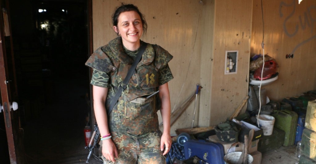 Julia entered service on the front lines in Pisky in April 2015, and was pulled off the lines after being wounded in July. She is currently an instructor at OUN’s training camp outside Kyiv.