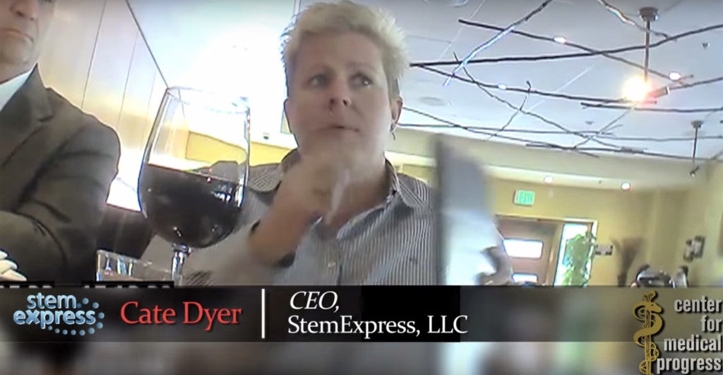 The video captures StemExpress CEO Cate Dyer talking about intact fetal cadavers.