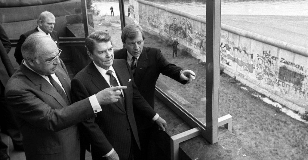 June, 1987 - Ronald Reagan with German chancellor Helmut Kohl at the Berlin Wall (Photo: Roland Holschneider/picture-alliance / dpa/Newscom)