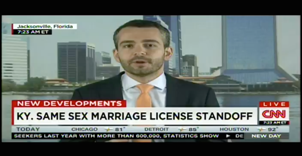 Ryan Anderson, William E. Simon senior research fellow at The Heritage Foundation, appeared on CNN today to talk about the case of Kim Davis, the Kentucky clerk currently jailed over her refusal to issue same-sex marriage licenses. In his interview, Anderson discussed ways that both same-sex marriages could go forward and Davis’ religious freedom concerns could be accommodated.