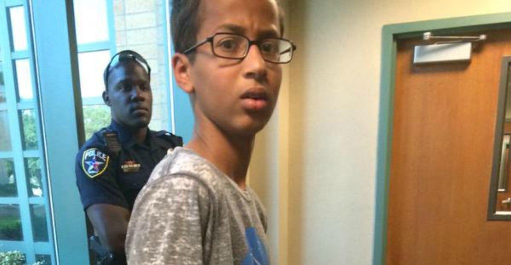 Social media are ablaze with the story of 14-year-old Ahmed Mohamed, a student at MacArthur High School in Irving, Texas. On Monday morning, the amateur inventor brought a home-made clock to school to show to a teacher. Shortly later, he was led out by the police in handcuffs.