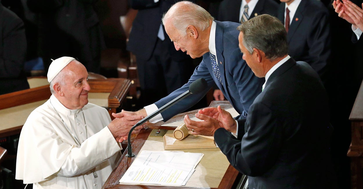 Before a joint session of Congress this morning, Pope Francis delivered a rousing address calling upon Americans to live up to the highest of our nation’s ideals. Pointing to Abraham Lincoln, Martin Luther King, Jr., Dorothy Day, and Thomas Merton, Francis praised Americans for their commitments to “liberty,” “liberty in plurality and non-exclusion,” “social justice and the rights of persons,” and “the capacity for dialogue and openness to God.”