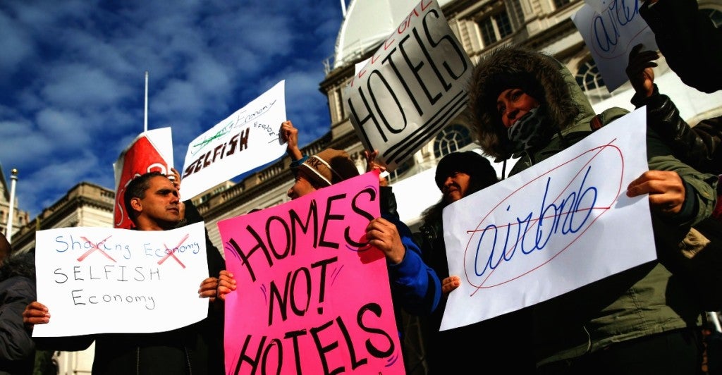 Of course, they’re fighting a considerable neighborhood backlash. Signs and even sidewalks are being co-opted by anti-Airbnb signs.