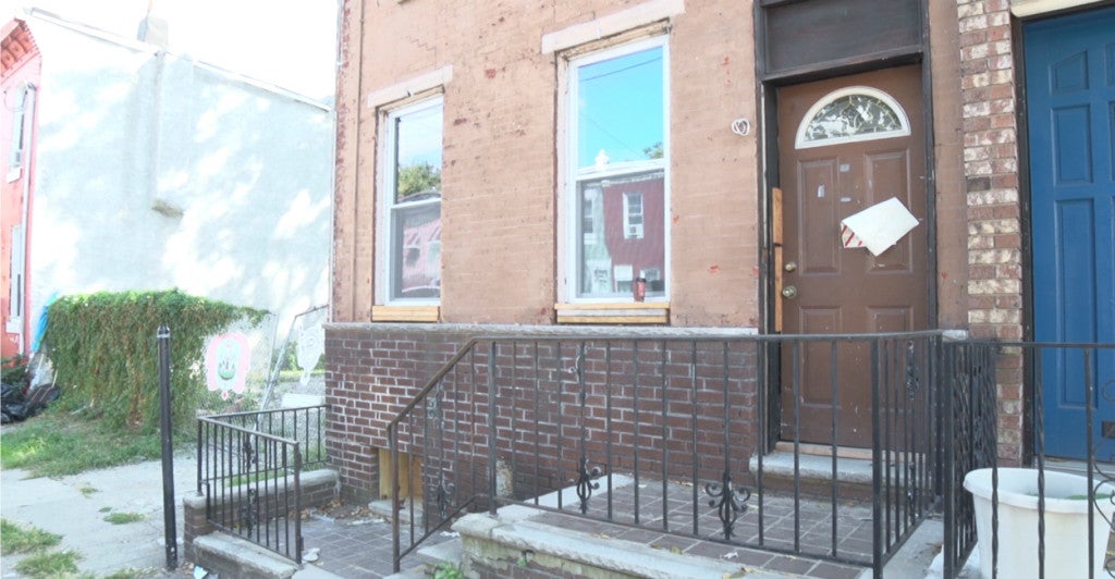 The house, on the southern end of Philadelphia, has a tan painted exterior that is riddled with cracks. An old pair of flip-flops lie on the stoop.