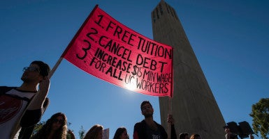 In the interview, the Northeastern University student said the march is seeking to accomplish three goals: “free public college, a cancelation of student debt, and a $15-an-hour minimum wage … for people who work on the campus.”