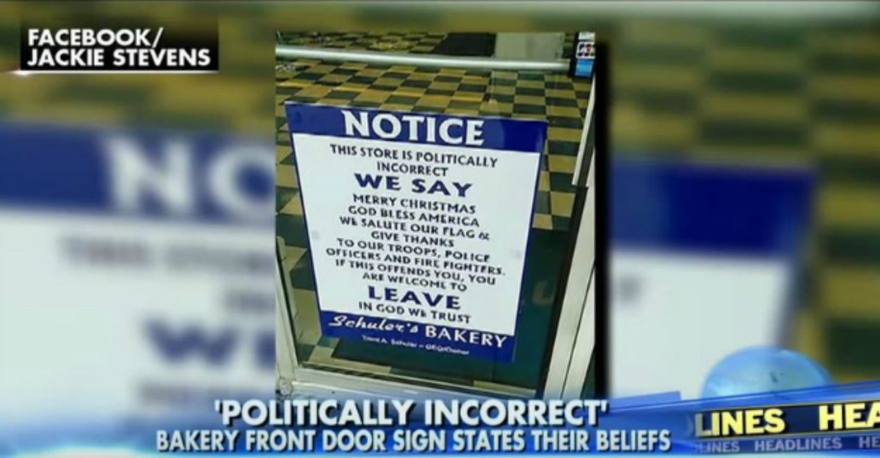 A sign posted outside an Ohio bakery eschewing political correctness has gone viral.