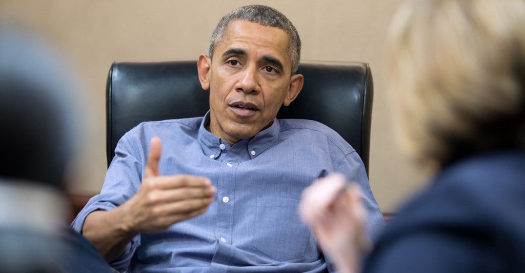 President Barack Obama convenes a meeting to discuss the latest on the San Bernardino, Calif., attack, Dec. 5, 2015. (Photo: Pete Souza/White House)