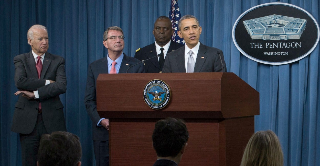 Speaking for eight minutes, surrounded by a phalanx of Pentagon officials and Vice President Joe Biden, the president had little new to say. He proclaimed once again that his minimalist strategy against ISIS is working and that “[w]e are hitting ISIL harder than ever.”
