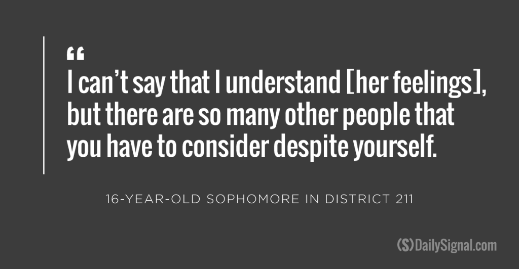 Reached by The Daily Signal, a spokesman for District 211 officials said they would let previous statements and actions speak for themselves.