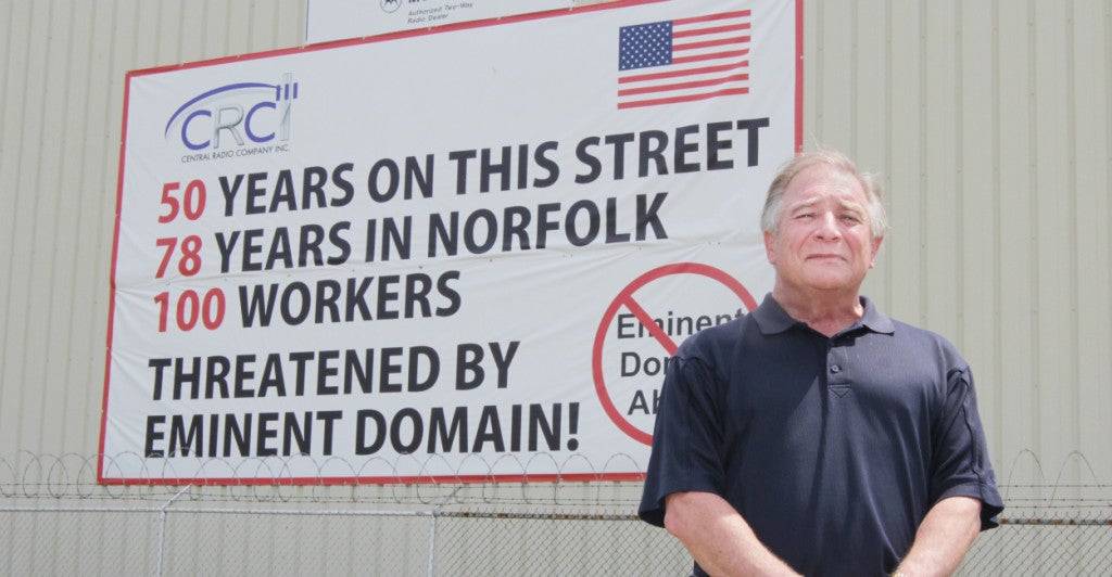 Wilson and Kelly Dickinson, Central Radio’s vice president, hung a big banner on the side of their building in May 2012. It reads: “50 years on this street. 78 years in Norfolk. 100 workers. Threatened by eminent domain!”