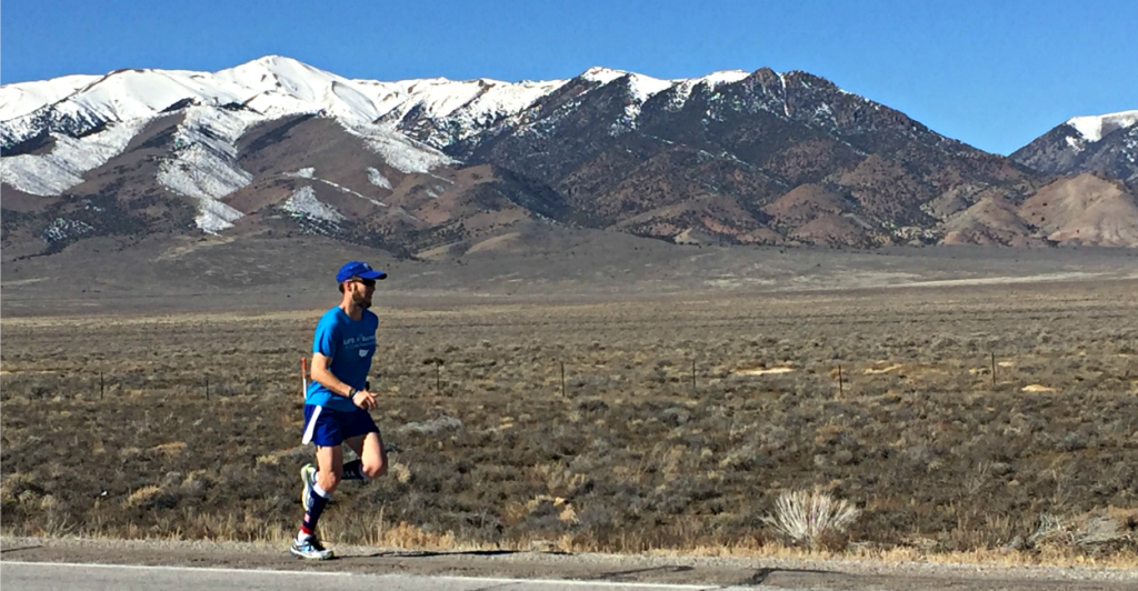 “In the middle of nowhere”: Jeff Grabosky takes a break during a run through Nevada on Presidents Day weekend. (Photos courtesy Jeff Grabosky)