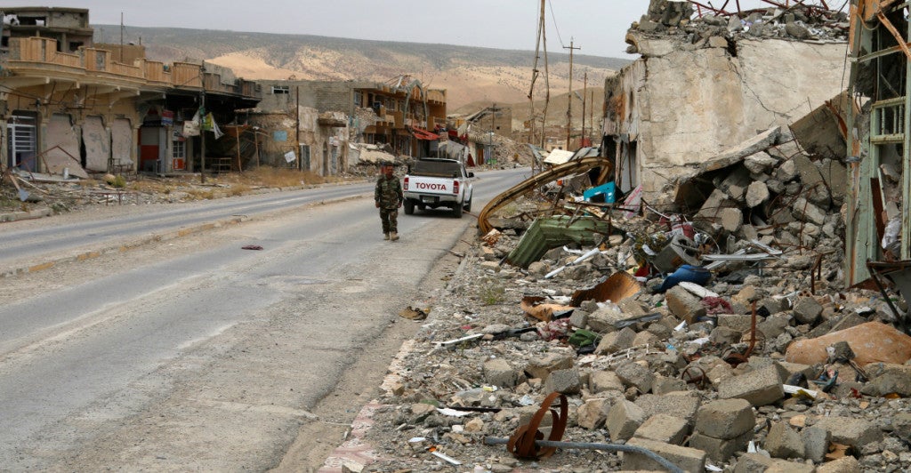 The peshmerga soldiers said the damage was due to both coalition airstrikes and a campaign by ISIS to destroy the homes and businesses of Yazidis, Christians, and Shiite Muslims.