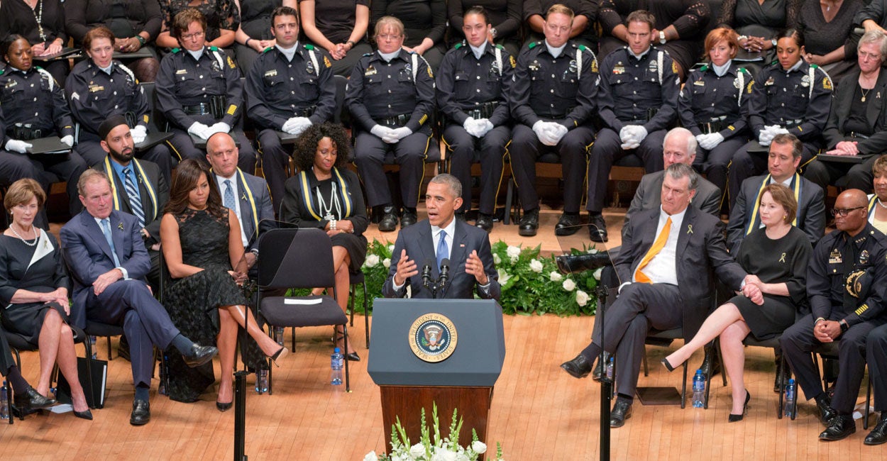 “We flood communities with so many guns that it is easier for a teenager to buy a Glock than get his hands on a computer or even a book,” Obama said, “and then we tell the police, ‘You’re a social worker, you’re the parent, you’re the teacher, you’re the drug counselor.’”