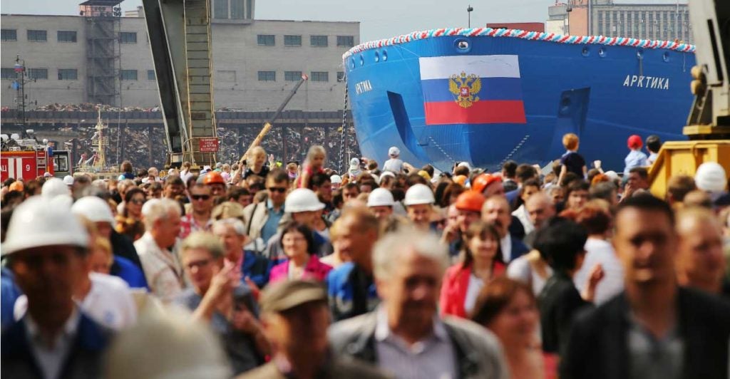 Just days later, the Ilya Muromets’ launch was upstaged when Russia floated the largest icebreaker in history. The nuclear-powered Arktika displaces 33,500 tons and is the first of three planned hulls.