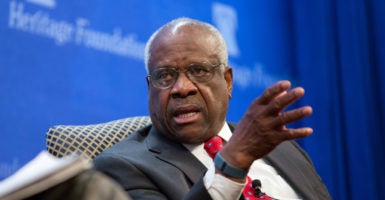 Supreme Court Justice Clarence Thomas answers a question from The Heritage Foundation’s John Malcolm during their hourlong chat. (Photo: Willis Bretz for The Daily Signal)