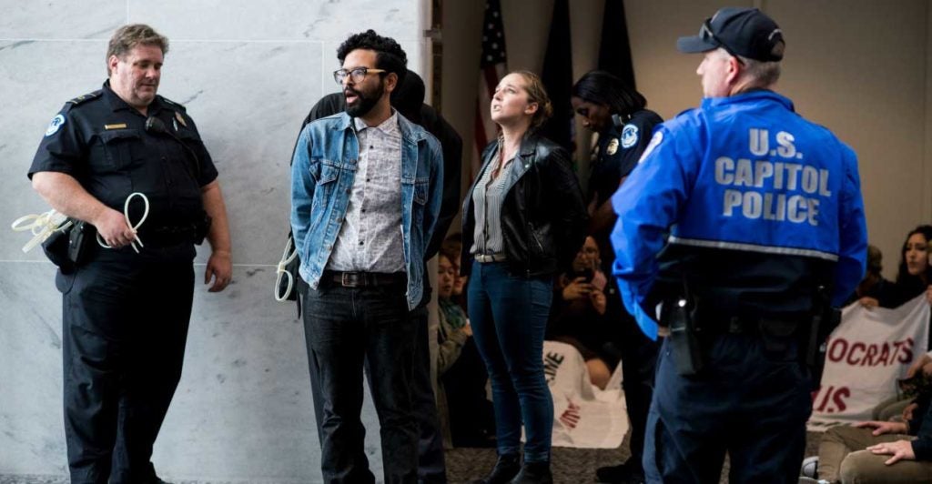 “The Democrats cannot negotiate with a racist, fascist President Trump, they must filibuster all day and all night to stop his racist, fascist agenda,” All of Us co-founder Waleed Shahid, 25, of Brooklyn, told The Daily Signal. “It was negotiation that led to calling African-Americans three-fifths of a citizen.”