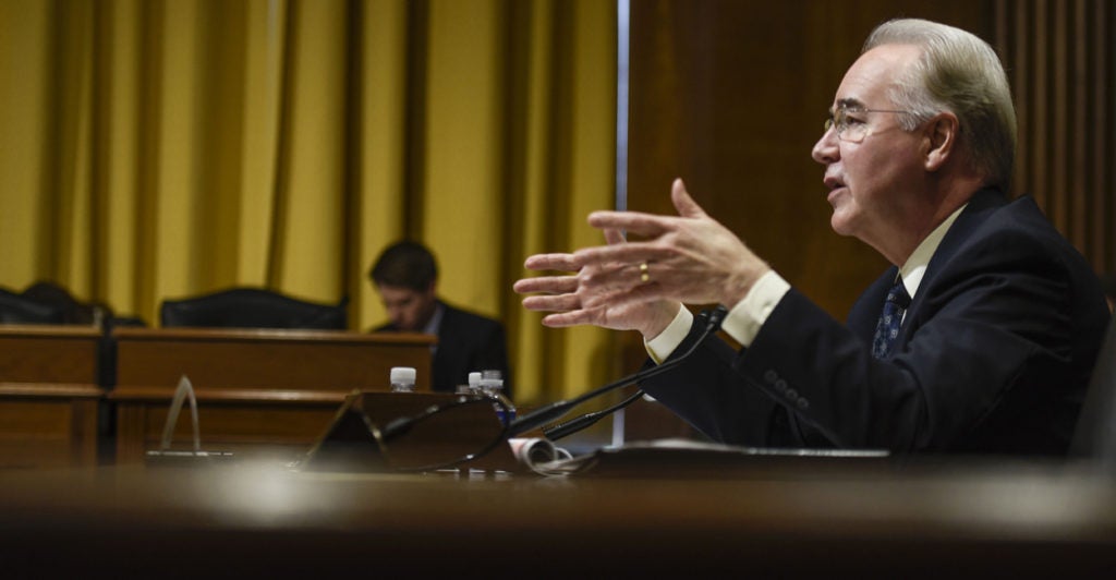 Rep. Tom Price, R-Ga., testified before the Senate Finance Committee, where Democrats pressed him for details on Republicans’ plan to replace Obamacare. Their questions included whether that plan would roll back the health care law’s expansion of Medicaid, which made more Americans eligible.