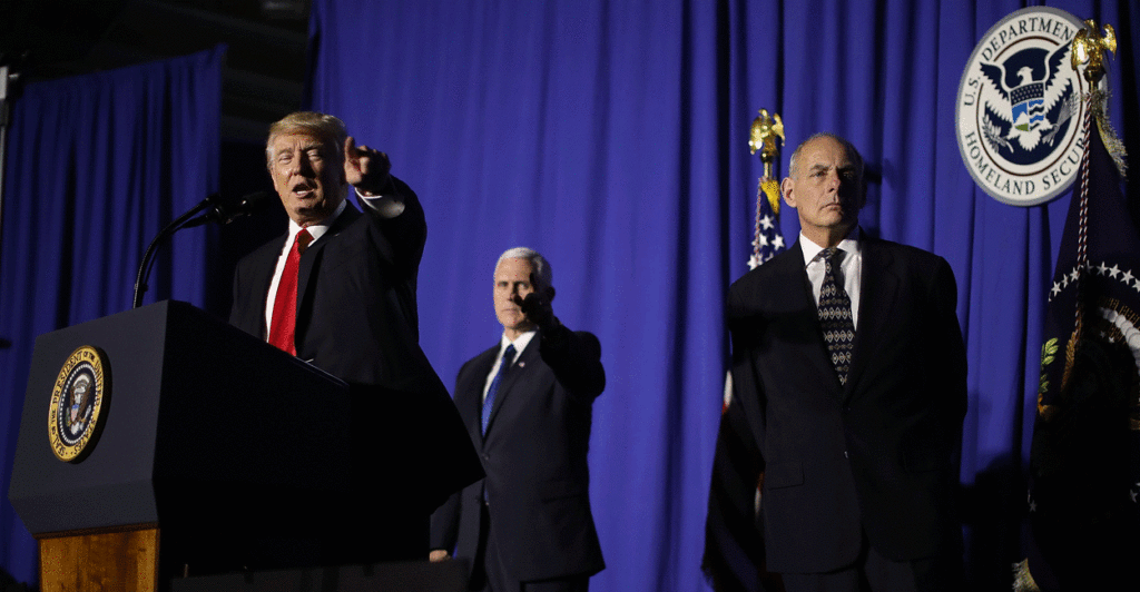 “The secretary of homeland security, working with myself and my staff, will begin immediate construction of a border wall,” Trump said, flanked by Vice President Mike Pence and Homeland Security Secretary John Kelly.