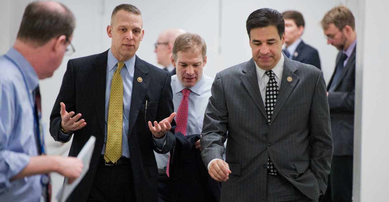 Reps. Mario Diaz-Balart, R-Fla.; Mark Meadows, R-N.C.; Raul Labrador, R-Idaho; Scott Perry, R-Pa.; Mark Sanford, R-S.C.; and Jim Jordan, R-Ohio; were all present at the January meeting of Conversations with Conservatives, a monthly press Q&A hosted by conservative lawmakers and The Heritage Foundation.