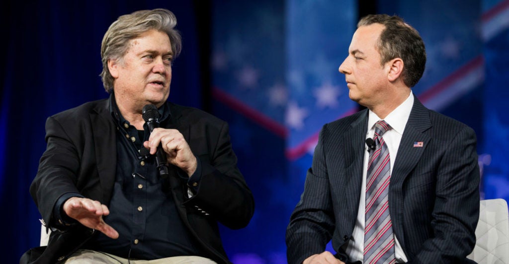 Priebus, the White House chief of staff, and Bannon, assistant to the president and chief strategist, were a star attraction at the Conservative Political Action Conference, the largest gathering of conservatives in the country.