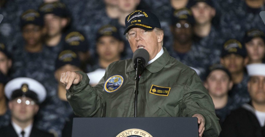 In a speech on board the next-generation aircraft carrier USS Gerald R. Ford, President Donald Trump pledged to rebuild the U.S. Navy fleet, eliminate cuts to our national defense, and “give the men and women of America’s armed services the resources you need to keep us safe.”