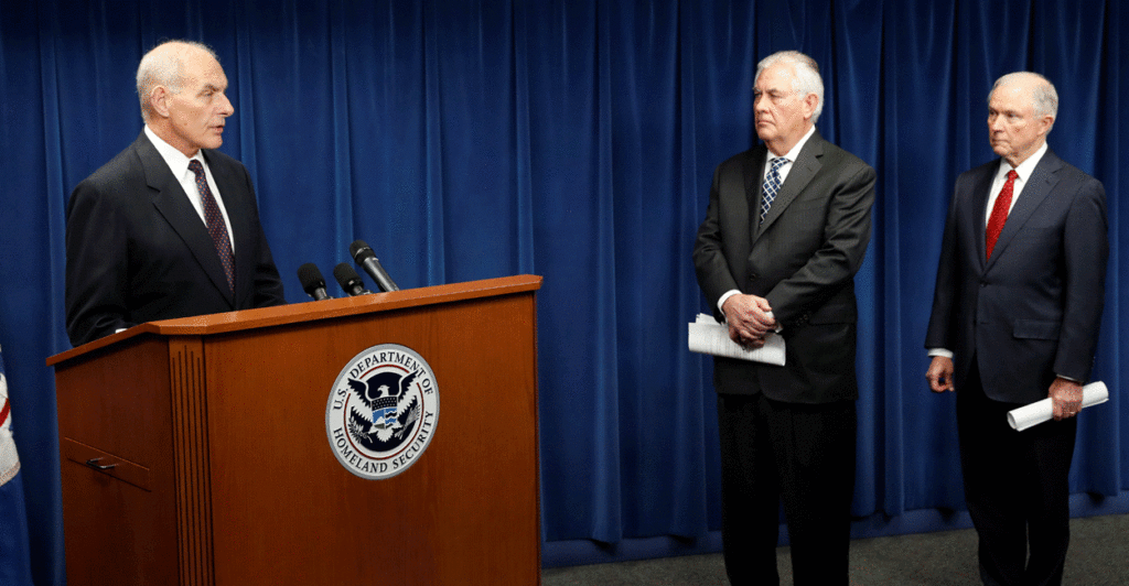 “As threats to our security continue to evolve and change, common sense dictates we continually re-evaluate and reassess the system we rely upon to protect our country,” Secretary of State Rex Tillerson said during a Monday press conference announcing the revised order, where he was joined by Attorney General Jeff Sessions and John Kelly, secretary of the Department of Homeland Security.