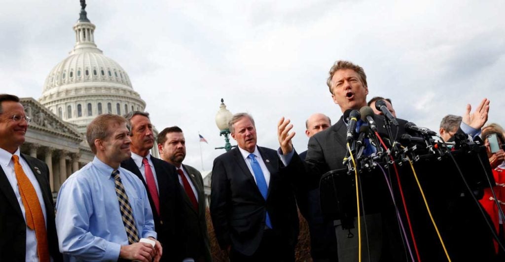 Sens. Ted Cruz, R-Texas; and Mike Lee, R-Utah; and Reps. Mark Meadows, R-N.C.; David Brat, R-Va.; and Jim Jordan, R-Ohio, also spoke at the rally.