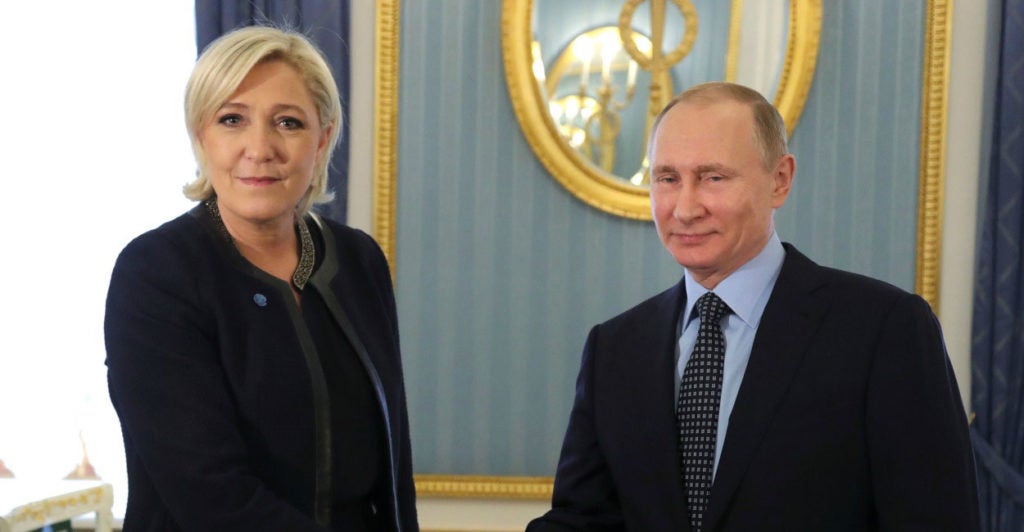 It helps a great deal, of course, that Le Pen has consistently called for dropping sanctions on the Kremlin—travel bans and asset freezes on companies, businessmen, and senior officials linked to Putin. Western countries imposed those sanctions after Russia invaded the Ukrainian peninsula of Crimea, which it later annexed.