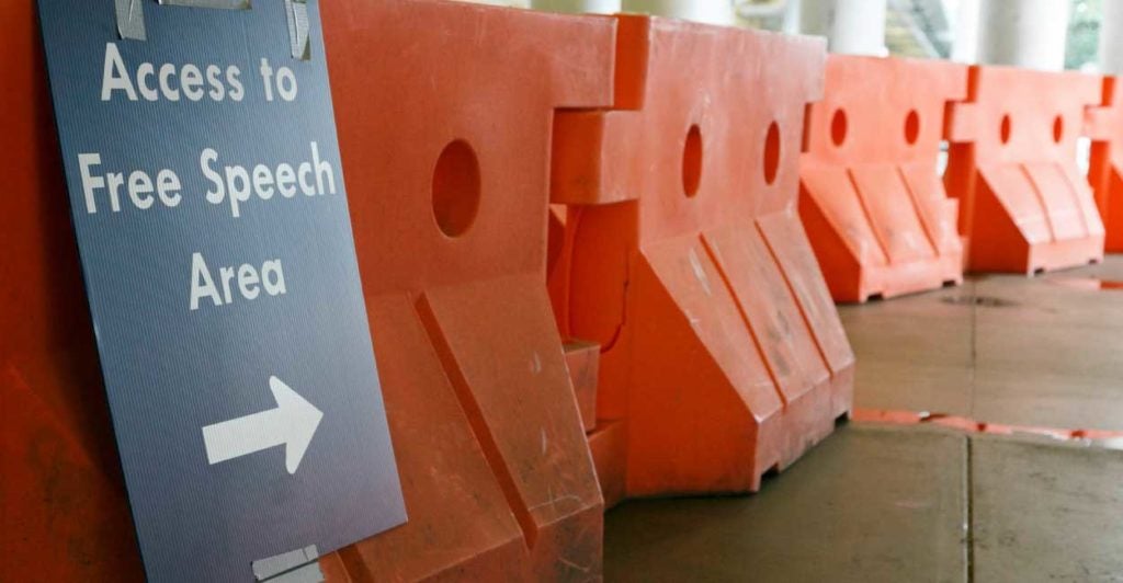 Opponents of free speech zones consider the whole idea to be upside-down, an implication that free speech cannot be practiced anywhere else on campus.
