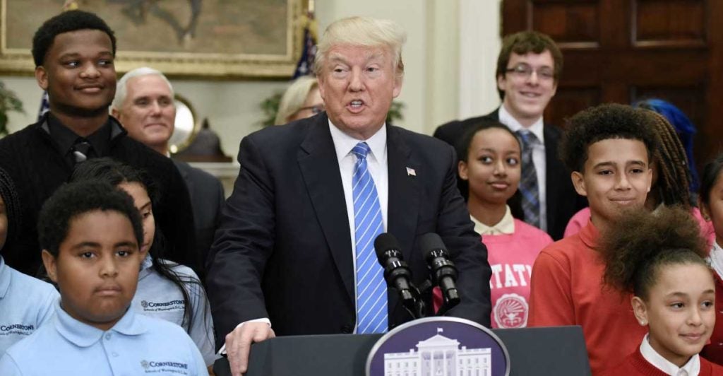 President Donald Trump signaled his support for education choice at a Wednesday event celebrating the achievements of charter school students and school voucher recipients in the nation’s capital.