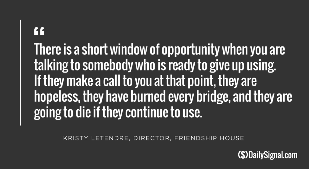 Kristy Letendre, Friendship House’s director, says “there is a short window of opportunity” to help opioid addicts recover when they seek treatment. (Photo: Josh Siegel/The Daily Signal)