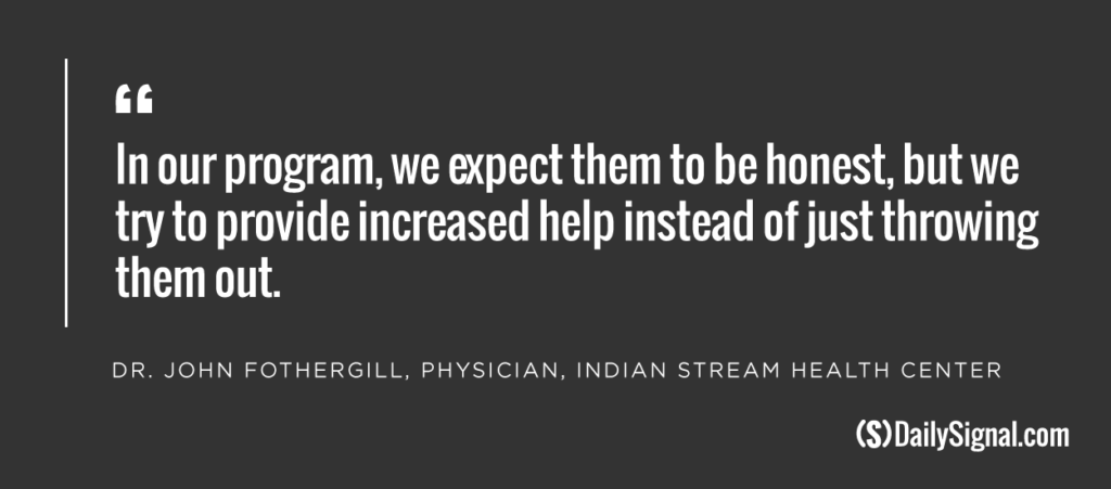 “The problem we have at the health center is the information we get from the public is very bad information in general,” Fothergill tells The Daily Signal in an interview. “Frequently, if person A won’t sell drugs to person B, person B may call the health center and say person A is selling drugs—just because he’s mad at him.”