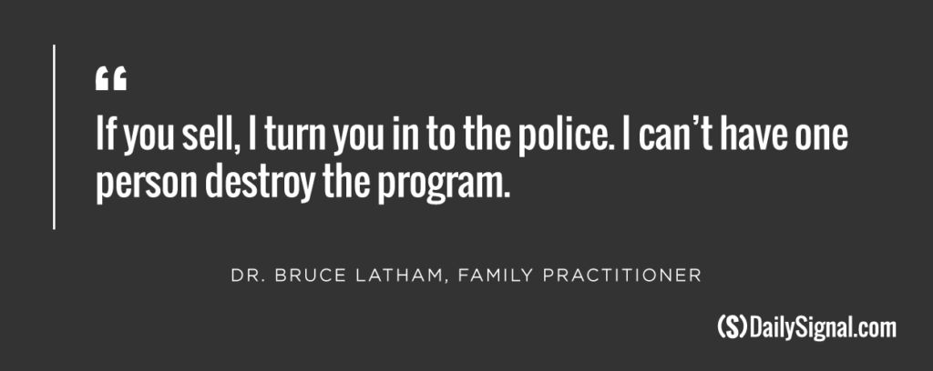 Latham says he will stop serving a patient if he suspects he or she is not handling medication responsibly—by using a higher dose than prescribed, selling the drugs, or diverting them to family and friends.