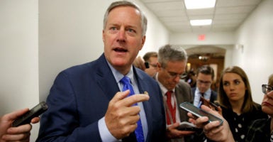 Joining Meadows at the monthly meeting of conservative Republicans with reporters who cover Congress included Reps. Andy Biggs and Paul Gosar of Arizona, Dave Brat and Morgan Griffith of Virginia, Matt Gaetz of Florida, Ron Estes of Kansas, and Thomas Massie of Kentucky.