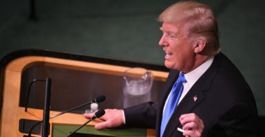 Speaking before other world leaders gathered in New York, Trump honored the U.S. Constitution, which turns 230 years old this year.