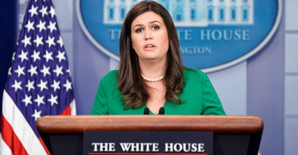 “We certainly support religious freedom and would ask that Congress also support that as well,” Sanders replied during a press briefing Monday at the White House.