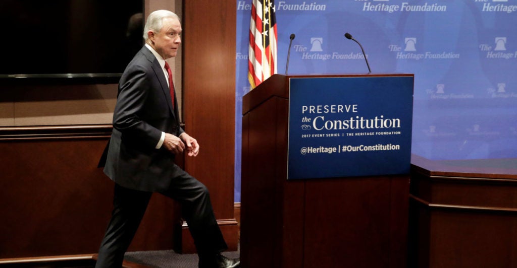 Attorney General Jeff Sessions spoke about the accomplishments of the Justice Department and its new direction in a speech at The Heritage Foundation on Thursday.