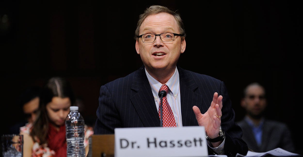 Hassett, sworn in Sept. 13, previously was director of domestic policy research at the Washington-based American Enterprise Institute, a conservative think tank where he also directed economic policy studies for more than 10 years.
