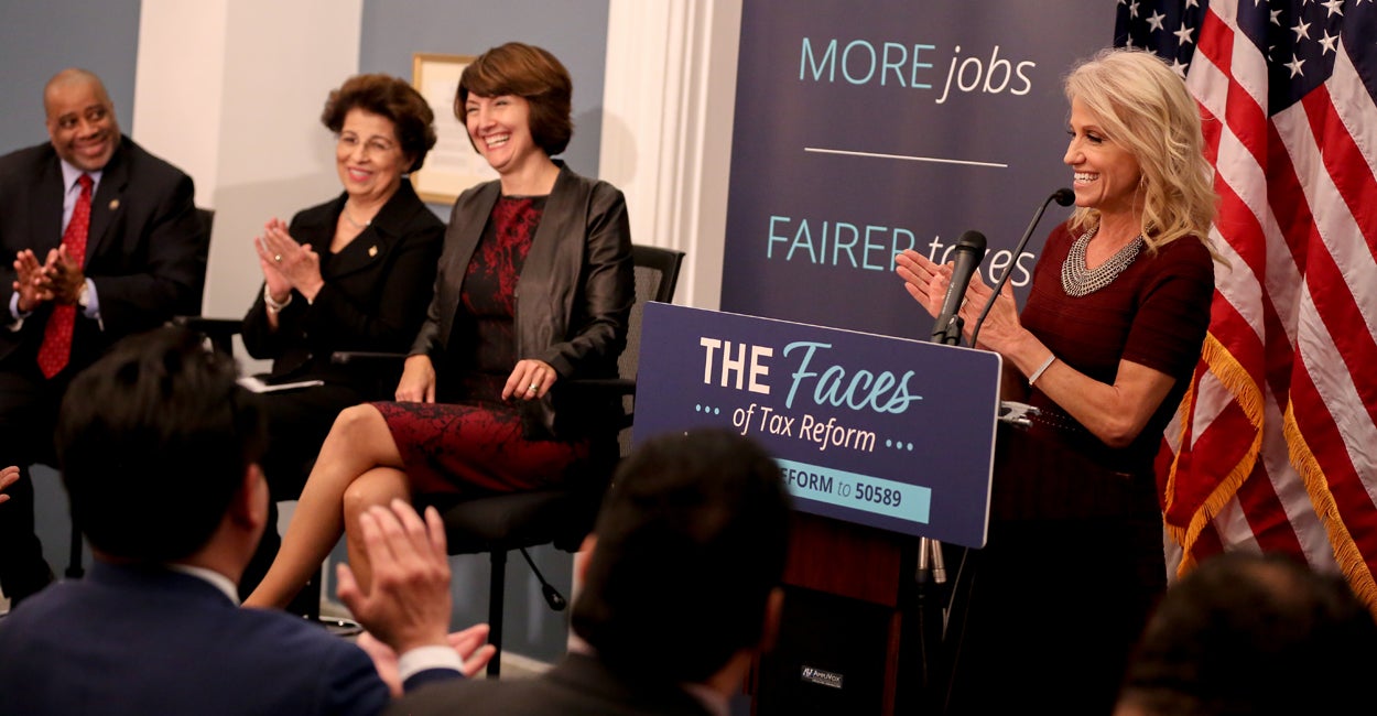 Kellyanne Conway, a counselor to President Donald Trump, praised the “Faces of Tax Reform” as a great idea at the Wednesday gathering.