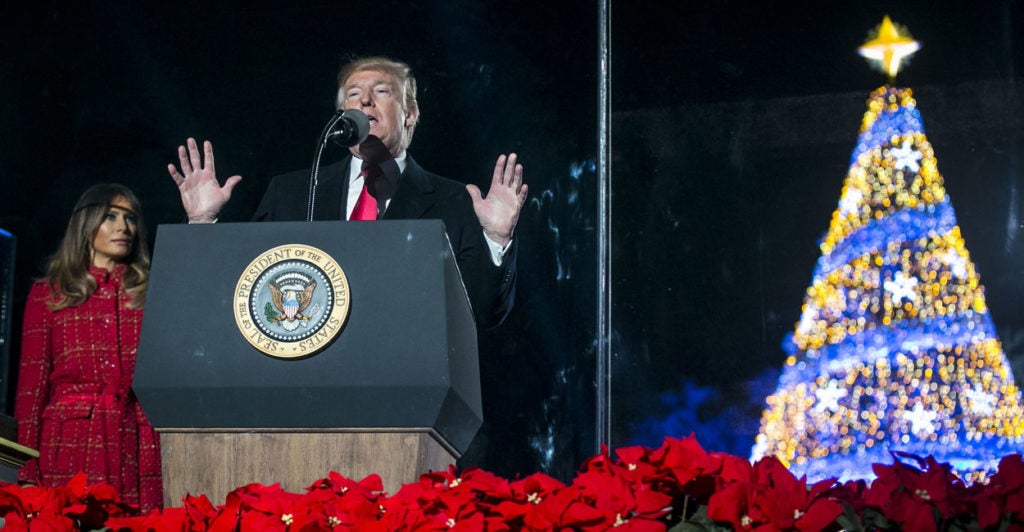 “Today is a day that I’ve been looking very much forward to all year long. It’s one that we have heard and we speak about and we dream about. And now, as the president of the United States, it’s my tremendous honor to finally wish America and the world a very merry Christmas,” he told the crowd at the ellipse.