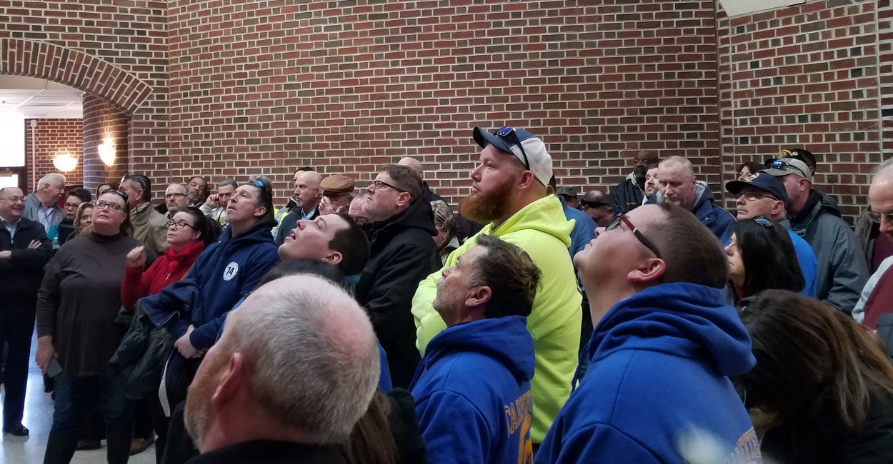 Representatives of local union affiliates gathered before last week’s hearing at a traffic circle outside the Sussex County Administrative Office Building. Members also packed the council chambers and watched the action from overflow rooms.