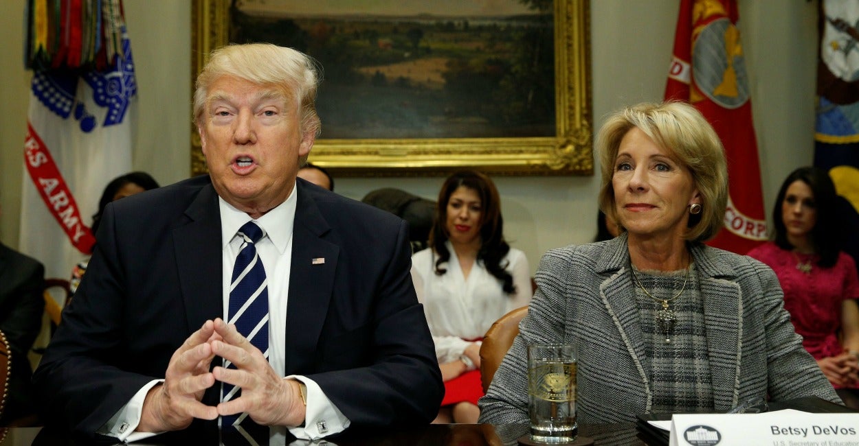 Trump praised Education Secretary Betsy DeVos, who was a school choice advocate before he appointed her to the position.