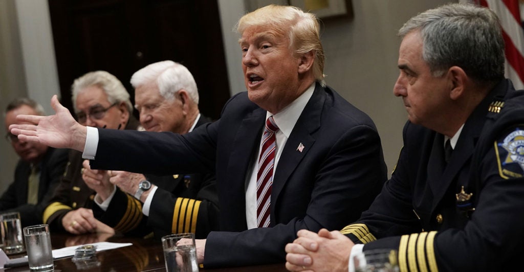 During brief remarks ahead of the meeting in the Roosevelt Room of the White House, Trump said his administration supported law enforcement “100 percent” and wanted to listen to law enforcement officials’ suggestions.