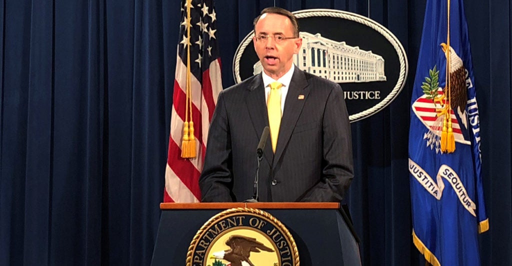 Special counsel Robert Mueller’s investigation of Russian meddling in the presidential election is “ongoing,” Deputy Attorney General Rod Rosenstein said at a press conference.