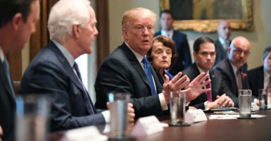 Sen. Dianne Feinstein, D-Calif., pushed for a ban on “assault weapons” during the meeting, or semi-automatic rifles, such as the AR-15. She even handed a letter to the president, whom she sat next to in the meeting.