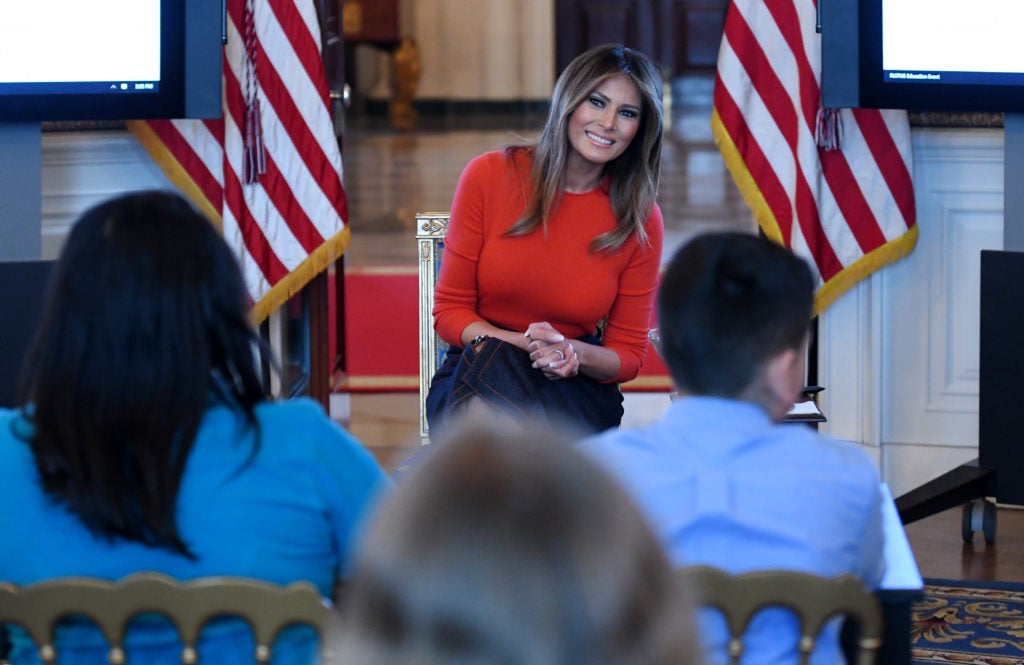 First lady Melania Trump hosted a listening session Monday with a group of 13 middle school students in the White House’s Blue Room with Education Secretary Betsy DeVos.