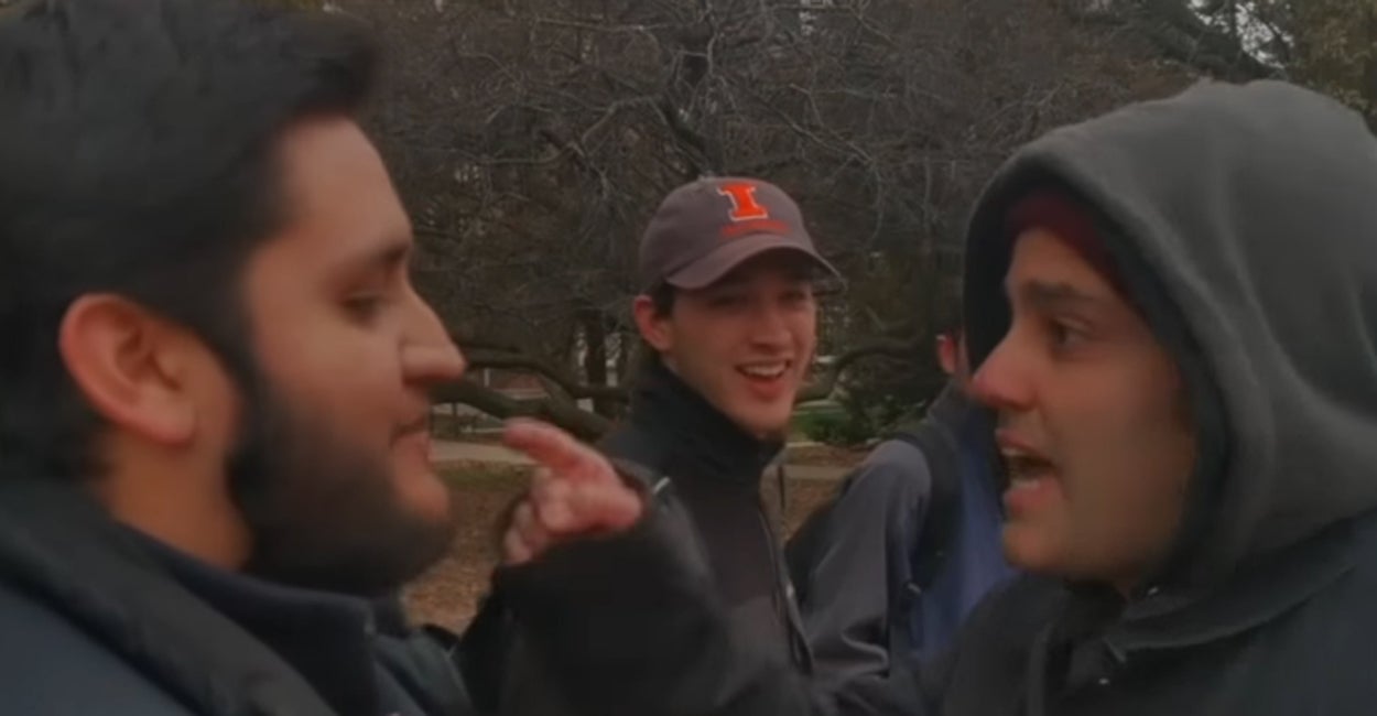 A video of the incident appears to show Khan, a doctoral candidate and graduate instructor of history at the University of Illinois at Urbana-Champaign, yelling at students, physically assaulting one, and taking and throwing the phone to the pavement.