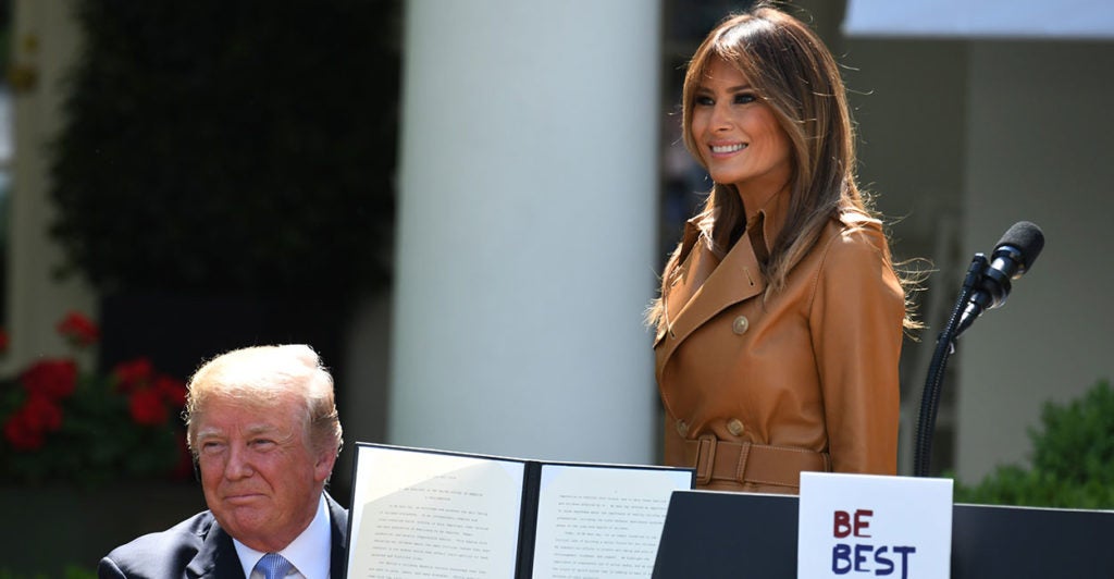 “As a mother and as first lady, it concerns me that in today’s fast-paced and ever-connected world, children can be less prepared to express or manage their emotions and oftentimes turn to forms of destructive or addictive behavior such as bullying, drug addiction, or even suicide,” Melania Trump also said.