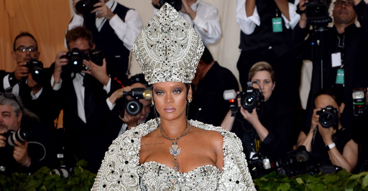 Pop diva Rihanna came dressed as a stiletto-heeled pope in pearls, crystals, and sky-high medieval headgear. (Will The Root writer scold her to cut it out with being a Catholic appropriating jackass and leave the bedazzled mitre at home?)